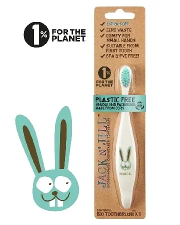 Deze bio tandenborstel van Jack N' Jill heeft een handvat gemaakt van maïszetmeel en zachte recycleerbare nylon haartjes. De tandenborstel is vrij van chemische stoffen zoals PVA, PVC, BPA en daardoor een natuurlijk, volledig biologisch afbreekbaar product.